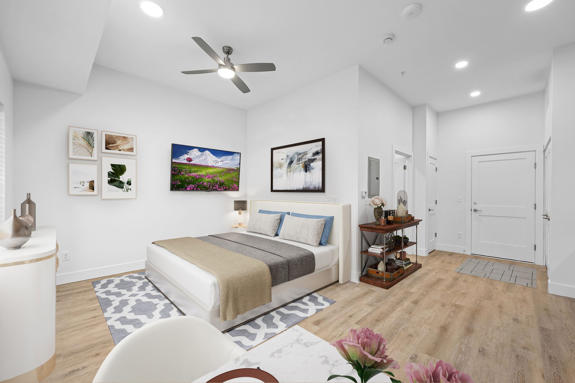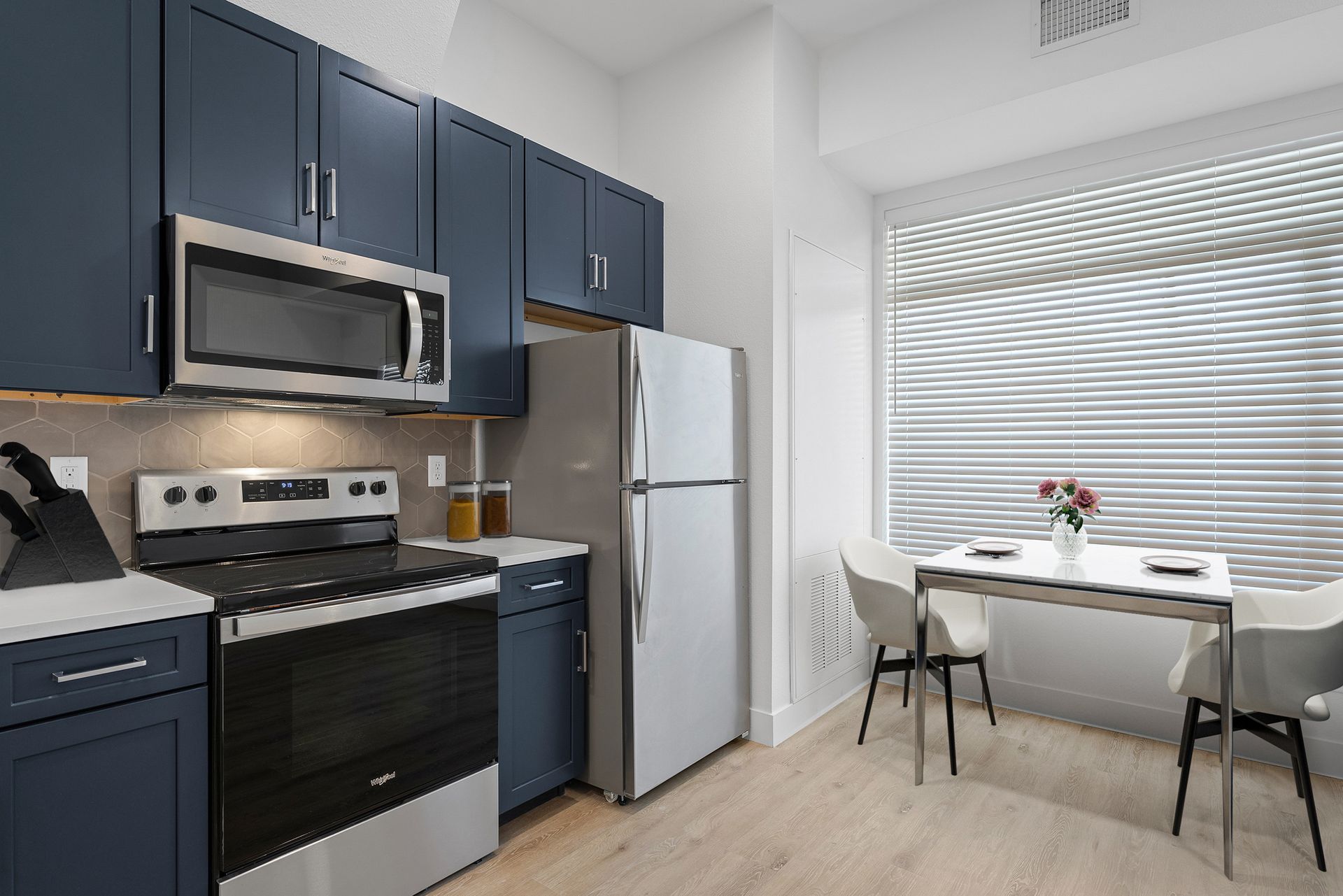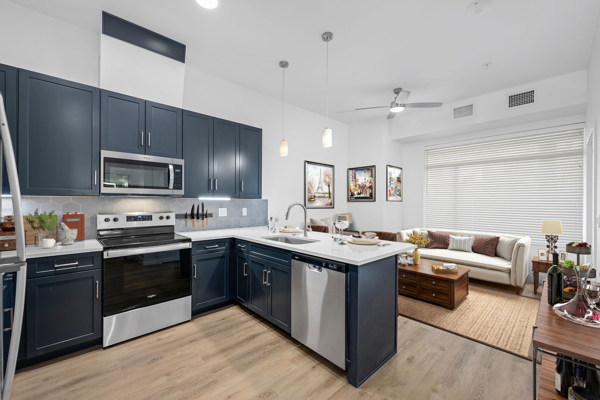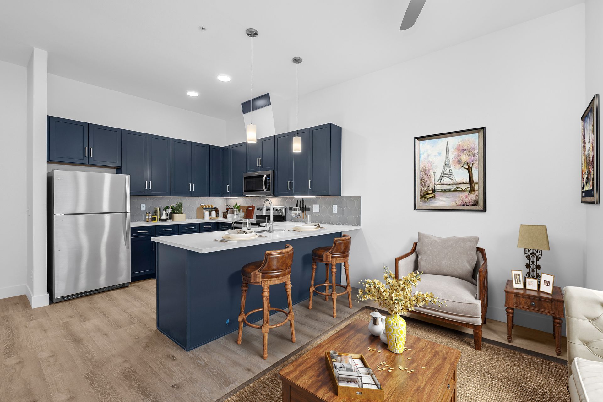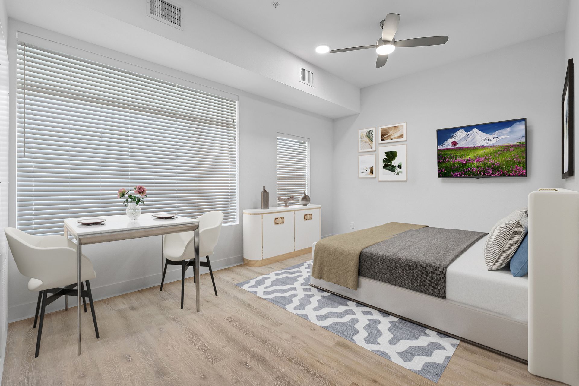 We've thoughtfully curated every inch of our apartments to ensure you get not only the best in style but the best of ease as well. With features like quartz countertops, private balconies, and tile surround showers, you'll discover that relaxation and vitality come hand in hand at Poplar Place Apartments. Community amenities include controlled entry, modern exercise facility and an amazing Rooftop Deck with views of the mountains and Downtown Skyline that rival the best in the City. An ideal location where every detail is crafted to enhance your living experience.