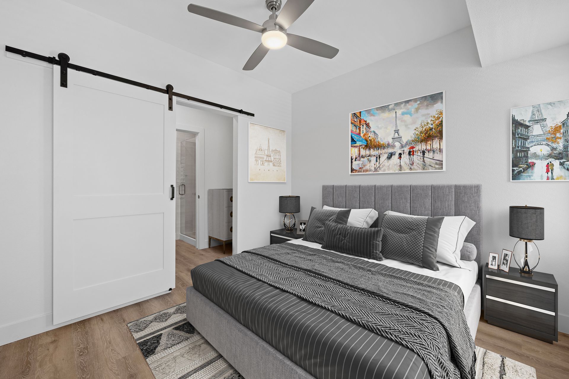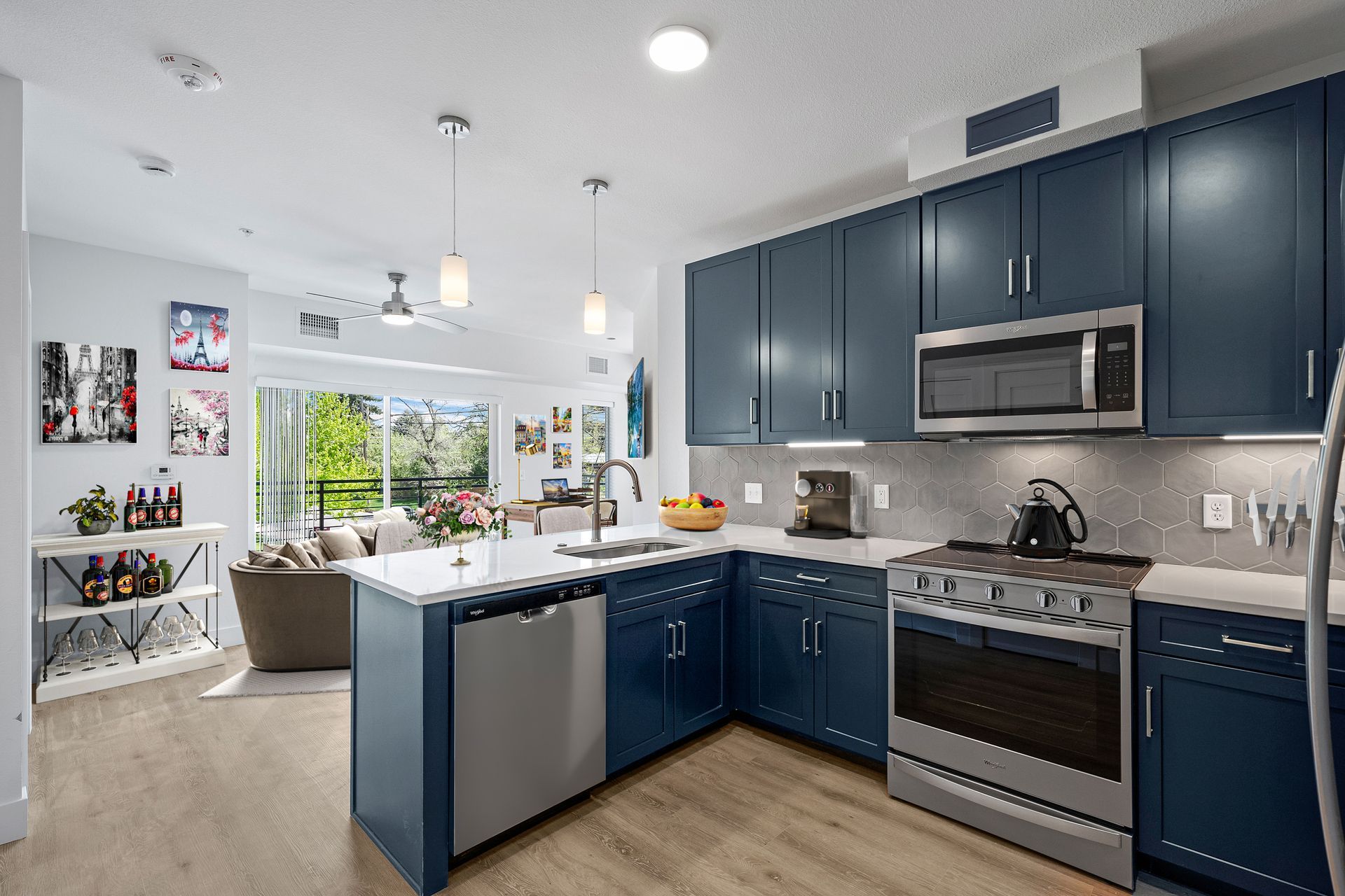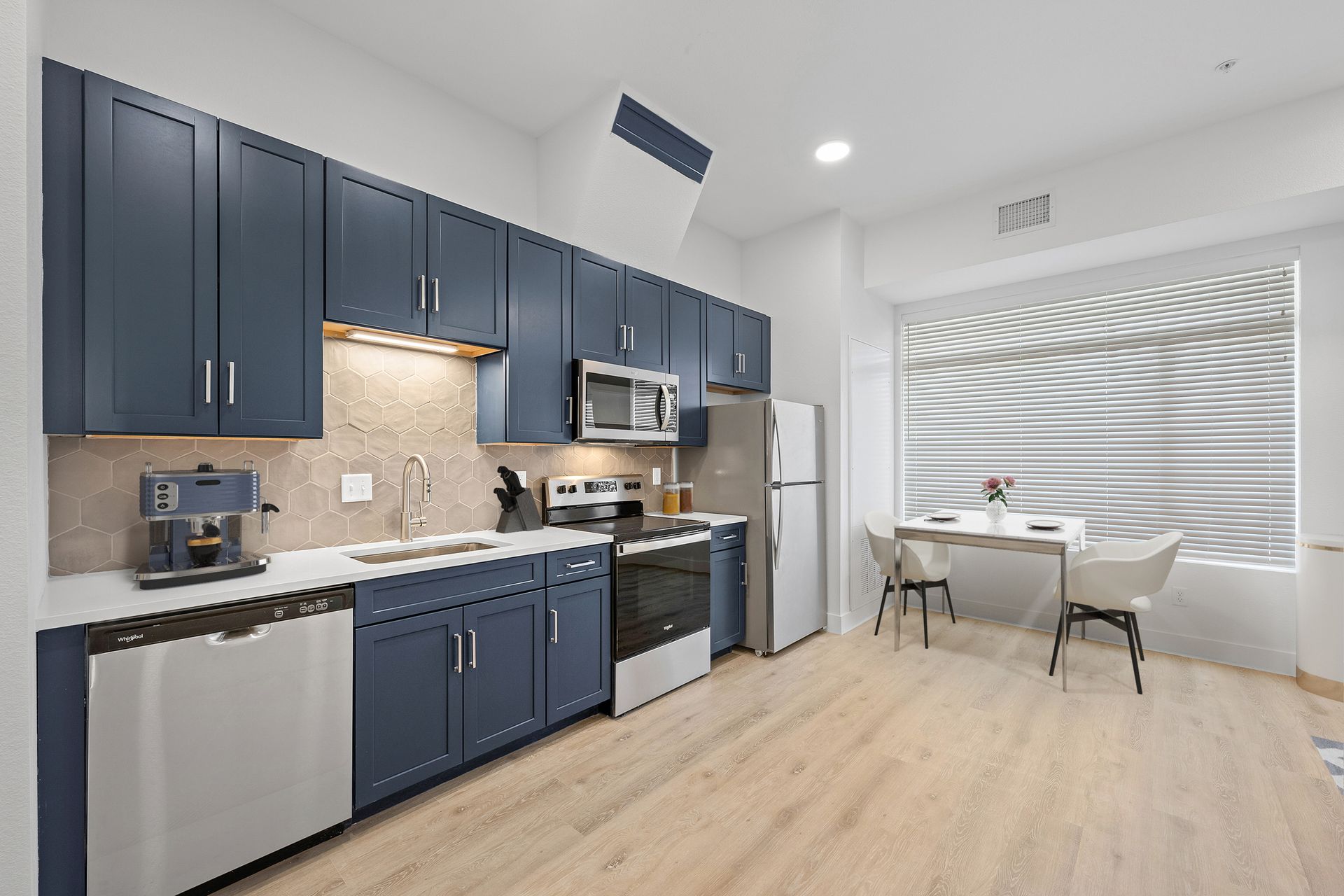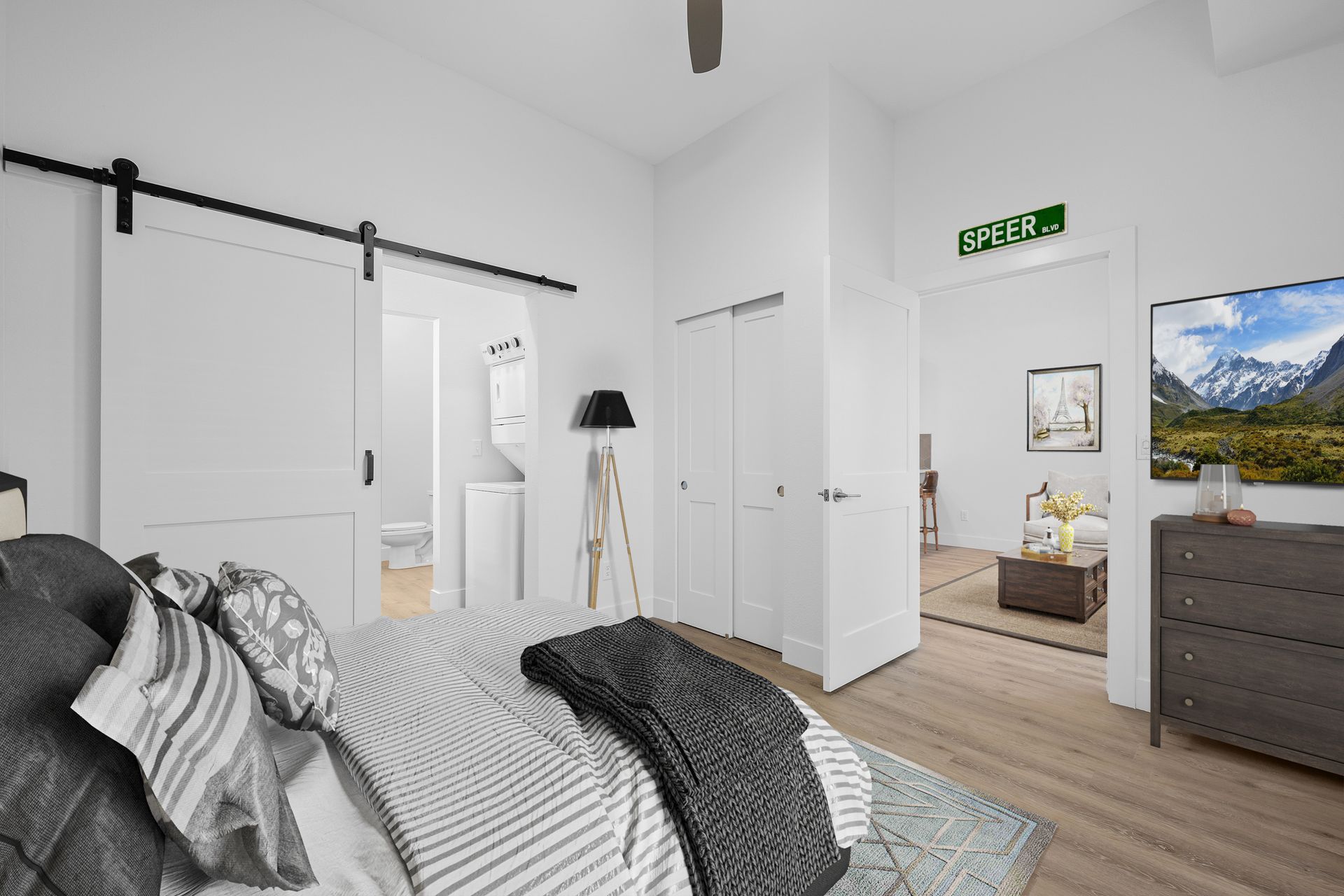 We've thoughtfully curated every inch of our apartments to ensure you get not only the best in style but the best of ease as well. With features like quartz countertops, private balconies, and tile surround showers, you'll discover that relaxation and vitality come hand in hand at Poplar Place Apartments. Community amenities include controlled entry, modern exercise facility and an amazing Rooftop Deck with views of the mountains and Downtown Skyline that rival the best in the City. An ideal location where every detail is crafted to enhance your living experience.